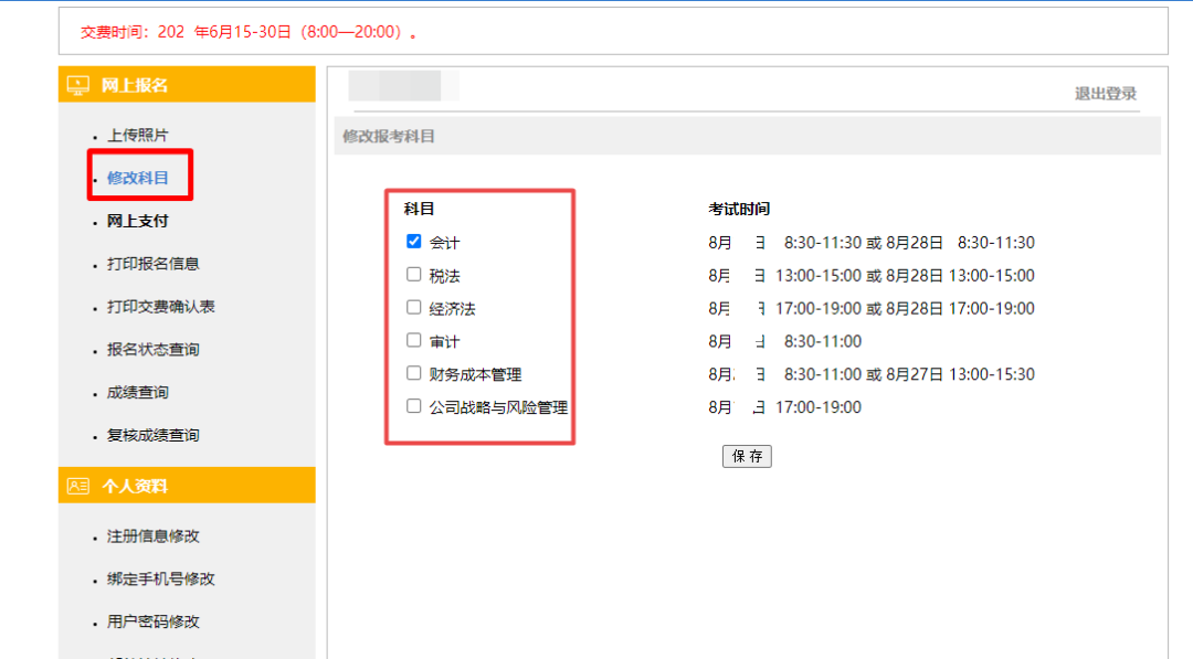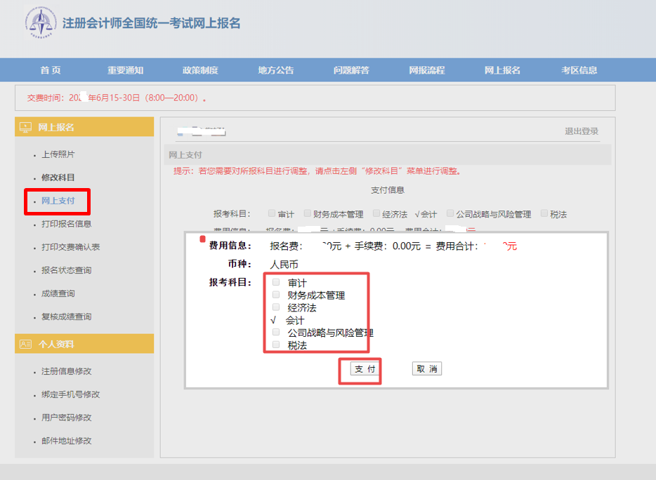 (一)交费期间,交费成功前考生可在考区不变的前提下对报考科目进行调整,请考生合理调整报考科目后再交费。
