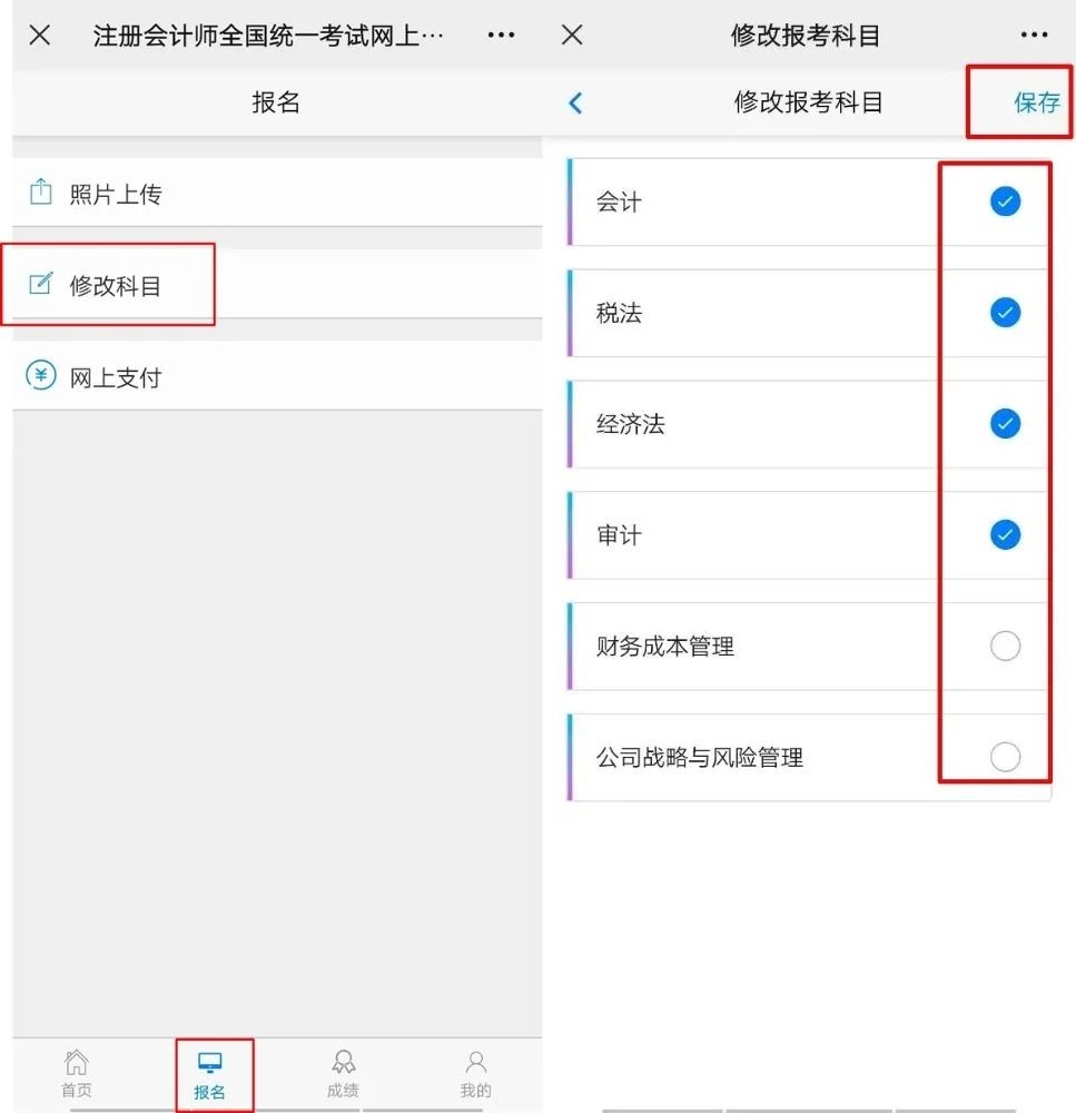 1.手机登录报名系统后,点击下方的“报名”,如需调整报名科目的,先点击“修改科目”,调整后进行支付。